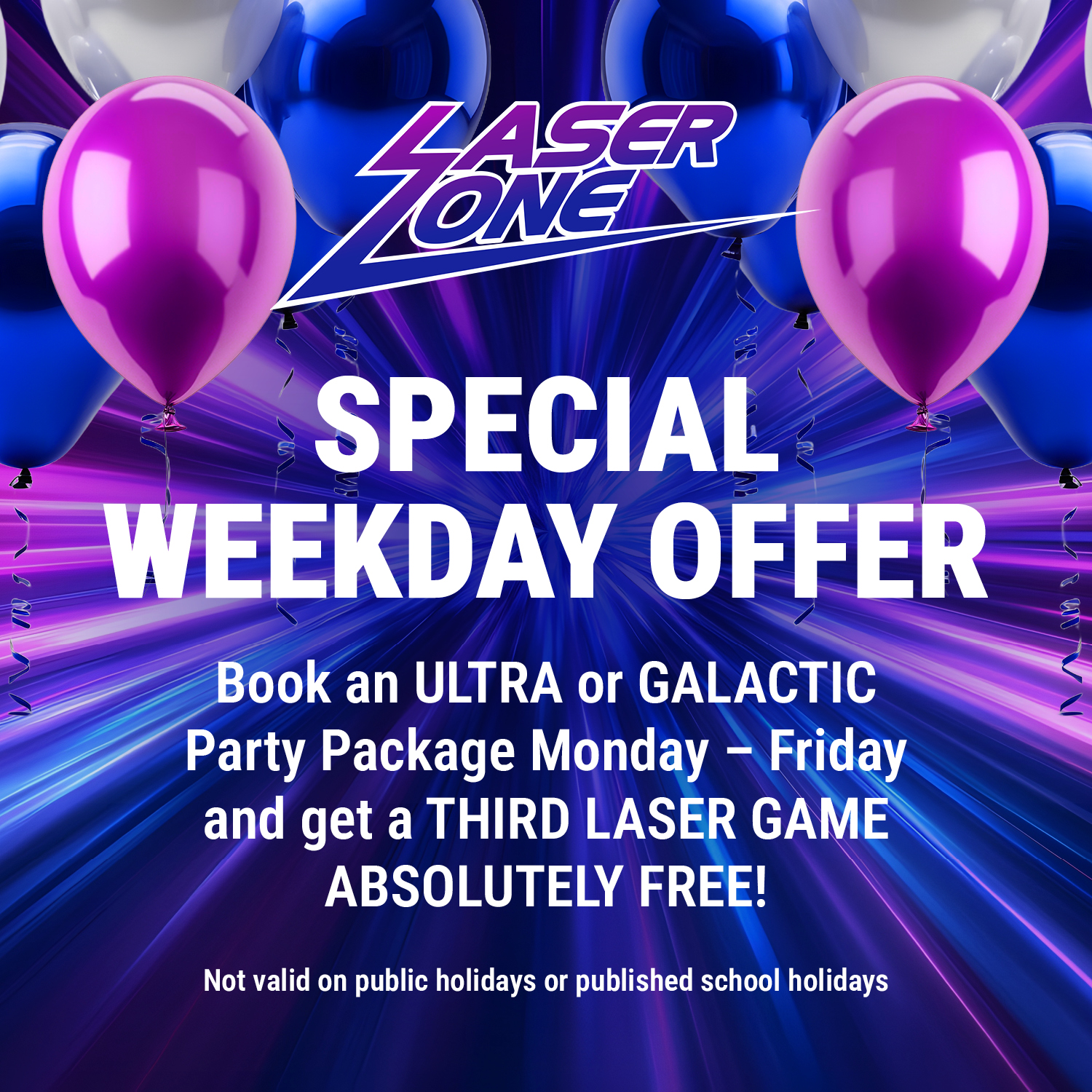 Ultra and Galactic parties are upgraded to Plus parties when booked for a Monday - Friday outside of school/public holidays.